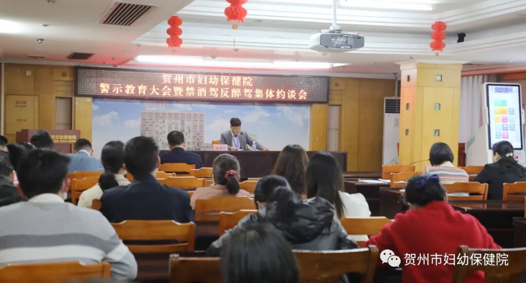 3月3日,贺州市妇幼保健院召开警示教育大会暨禁酒驾反醉驾集体约谈会,医院领导班子、中层干部、院属党支部委员参会。