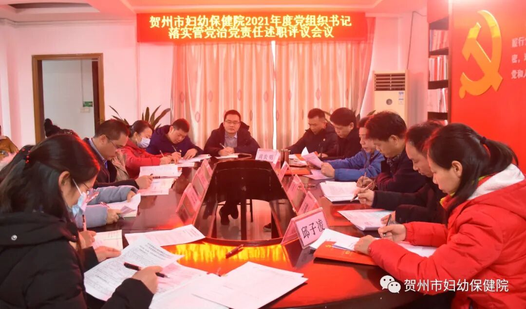 2月23日,贺州市妇幼保健院召开2021年度党组织书记落实管党治党主体责任述职评议会议。医院党总支部委员、各党支部委员、党小组组长、专职党务干部参会。
