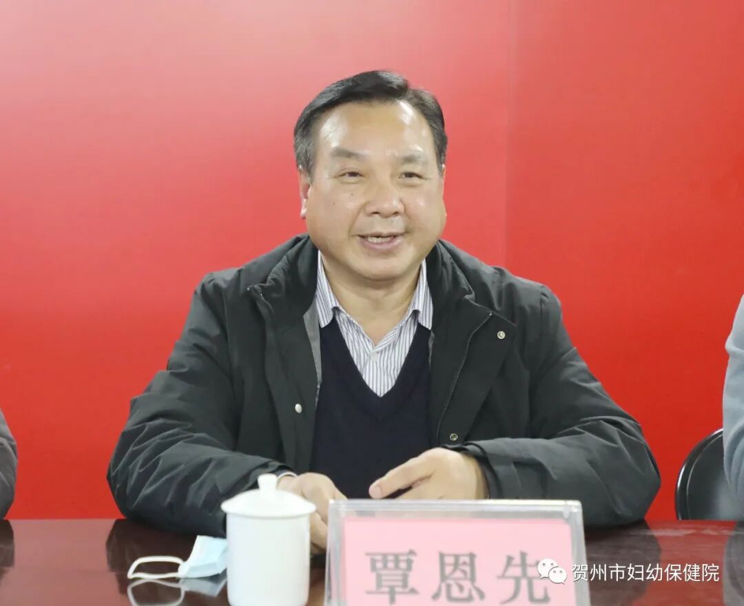 一年春作首,万事行为先。2月8日,贺州市卫生健康委党组书记、主任覃恩先一行到贺州市妇幼保健院开展春节后走访慰问。市卫生健康委党组成员、副主任桂志刚,党组成员、副主任罗和宁,党组成员韦志刚陪同慰问。