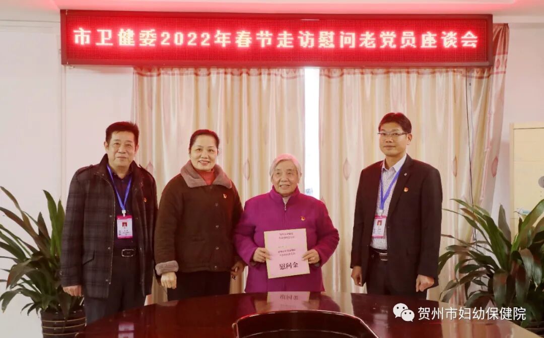 春节将至,年味渐浓。近日,我院开展春节前走访慰问活动,为老党员送去党和政府亲切的节日关怀以及新春祝福。市计生协四级调研员,市爱卫办主任(兼)钟玲蓉,医院党总支部委员带队开展走访慰问,院属党支部委员参加慰问。