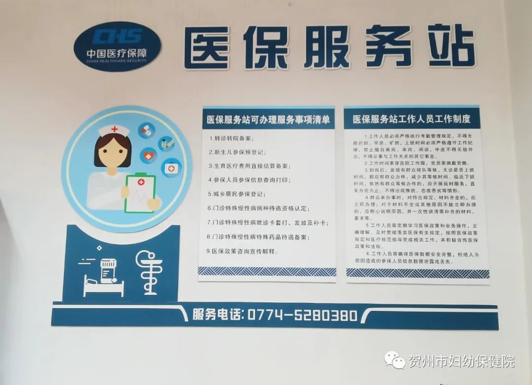 1月4日,贺州市妇幼保健院医保服务站正式启用。医保服务站的设立,为来院就诊群众提供了优质便捷的医疗保障服务,实现了政策咨询在身边、待遇申请在身边、医保享受在身边,推动了医保经办由柜台服务向基层一线下沉、向群众身边延伸,打通了便民医保服务“最后一公里”。