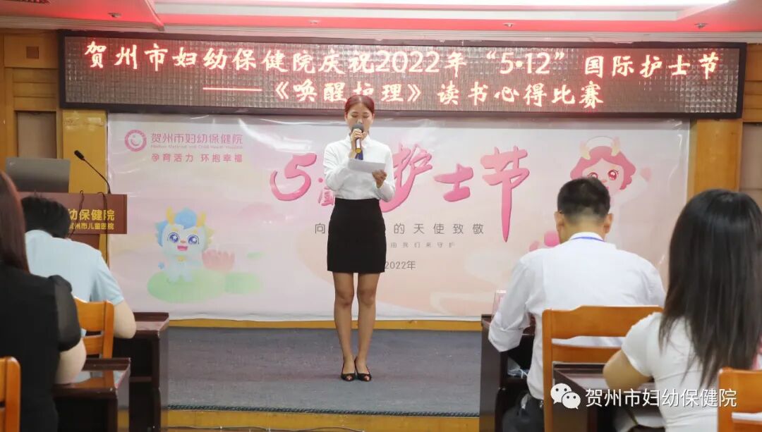 4月26日,贺州市妇幼保健院举办庆祝2022年国际护士节《唤醒护理》读书心得比赛,充分激发医院护理人员主动读书的学习热情和爱岗敬业的南丁格尔精神,拓展护理服务理念,提升护理服务动能,不断推动医院护理服务品质的持续提升。